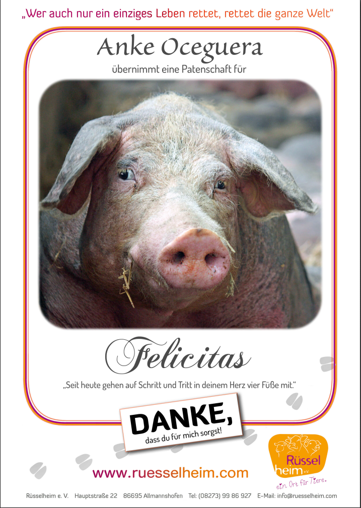 Ist sie nicht süß und setzt sich superkeck in Szene? Beim Rüsselheim e.V. im Schwabenland macht sich die Schweinedame viel besser als auf einem Teller.