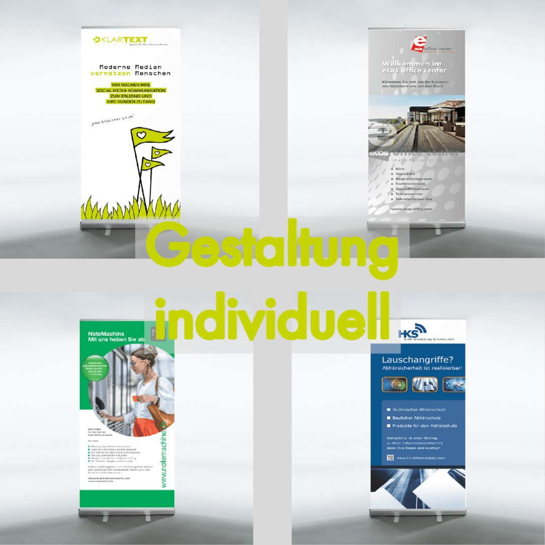 Oder... Sie wünschen sich ein aufwändigeres Design? Dann rufen Sie uns an und wir gestalten Ihr individuelles Angebot und individuelles Roll-up!